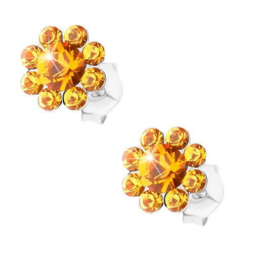 Popis produktu Náušnice ze stříbra 925, zářivý kvítek z oranžových krystalů Preciosa