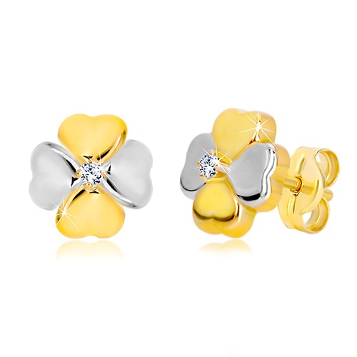Popis produktu Náušnice ze zlata 585 - dvoubarevný čtyřlístek pro štěstí se zirkonem
