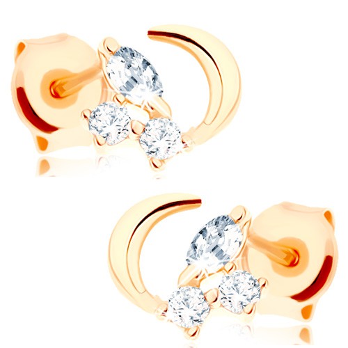 Popis produktu Náušnice ze žlutého 14K zlata - lesklý půlměsíc, blýskavé zirkony čiré barvy