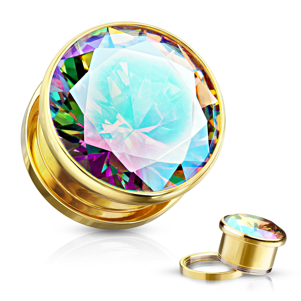 Top produkt Ocelový 316L tunel do ucha, vsazený zirkon, duhový odlesk, PVD - Tloušťka : 12 mm od top značky Šperky Eshop za výhodnou cenu 168 CZK Kč. Zobrazit více »