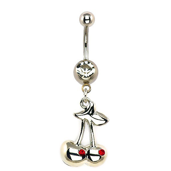 Ocelový piercing do břicha - stříbrné třešně, zirkony