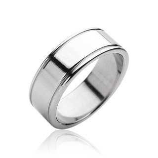 Ocelový prsten hladký matný, lesklé okraje - Velikost: 69