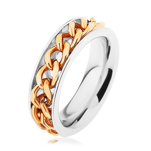Popis produktu Ocelový prsten, řetízek zlaté barvy, zrcadlový lesk - Velikost: 56