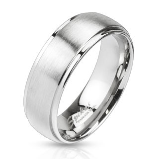Ocelový prsten stříbrné barvy - matný pásek uprostřed, 8 mm - Velikost: 62