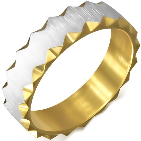 Velmi prodávaný produkt Ocelový prsten zlaté barvy se saténovým pásem, trojúhelníkové výřezy - Velikost: 51 od společnosti Šperky Eshop ve slevě 200 CZK Kč. Zobrazit více »