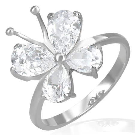 Popis produktu Ocelový snubní prsten - zirkonový motýlek s tykadly - Velikost: 53