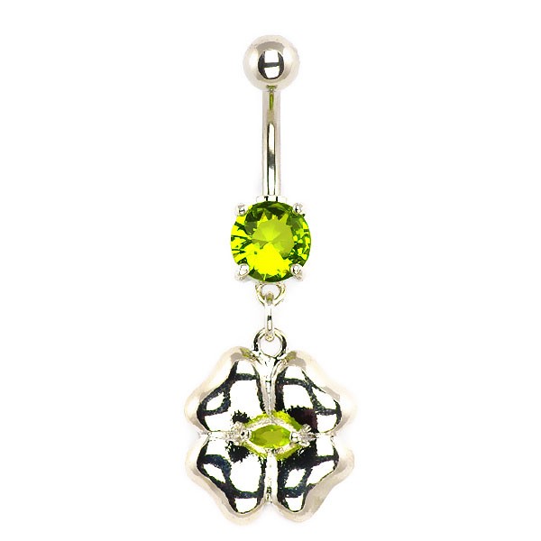 Popis produktu Piercing do břicha - stříbrný čtyřlístek, vsazený zirkon