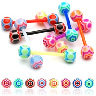 Piercing do jazyka UV - barevná pavučina s teflonovou čínkou.Čekáme, že tahle nabídka se zařadí mezi bestsellery. Udělejte si radost.