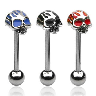 Popis produktu Piercing do jazyka - Flaming skull - Barva piercing: Modrá