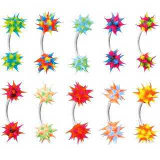 Popis produktu Piercing do obočí se silikonovým barevným ježkem - Barva piercing: Oranžová - Zelená