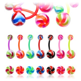 Piercing do pupíku v pestrých barvách s motivem vrtule.U nás nakoupíte vždy kvalitní zboží za bombastické ceny. Zařaďte se mezi spokojené klienty.