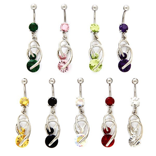 Piercing do pupíku - dvě podkovičky spojené barevnými zirkony.U nás nakoupíte vždy kvalitní zboží za bombastické ceny. Udělejte si radost.