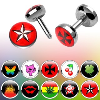 Popis produktu Piercing falešný s různými barevnými zobrazeními - Tvar hlavičky: Sedmička