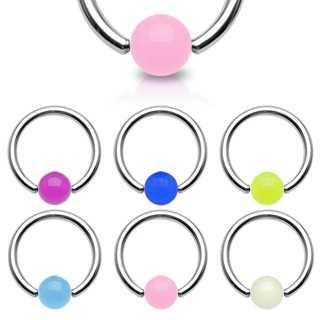 Popis produktu Piercing - kroužek, zářící kulička - Rozměr: 1,6 mm x 14 mm x 5 mm, Barva piercing: Fialová