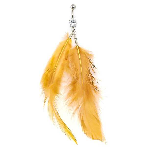 Popis produktu Piercing pupíku s čirým zirkonem a medovými pírky