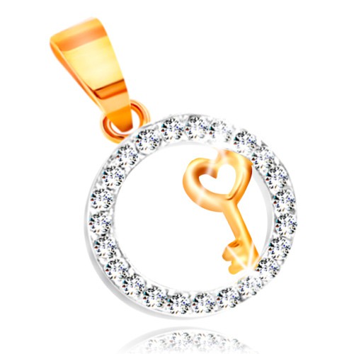Popis produktu Přívěsek ze zlata 585 - klíček se srdíčkem v kroužku z čirých zirkonů