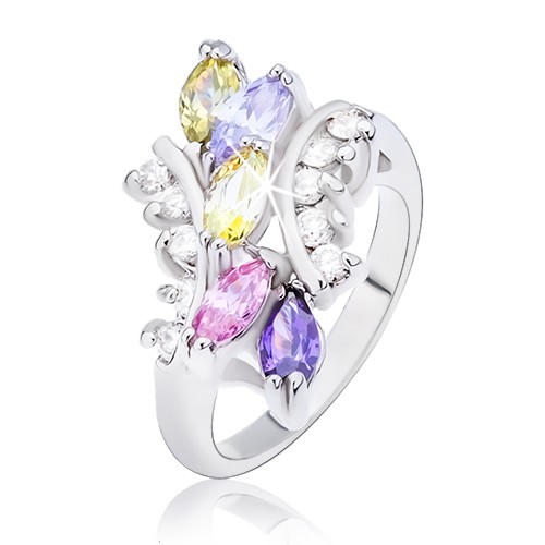 Prsteň s farebnými zirkónovými zrnkami a zaoblenými ramenami - Velikost: 60