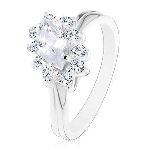 Prsten s lesklými rameny, čiré zrnko s čirou zirkonovou obrubou - Velikost: 50