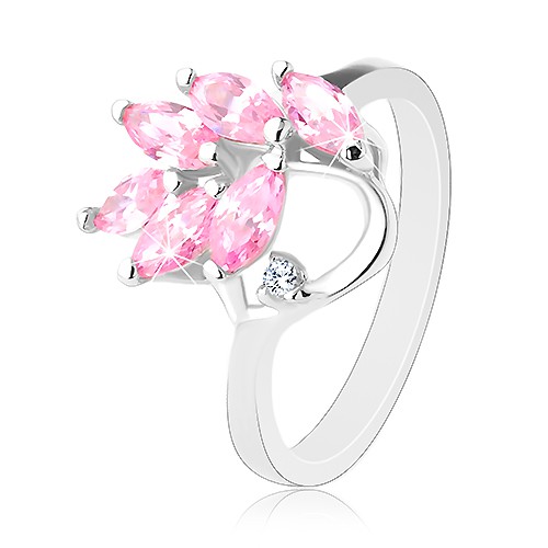 Popis produktu Prsten s lesklými rameny, větvička s růžovými zirkonovými lístky - Velikost: 55