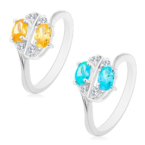 Prsten stříbrné barvy, barevné zirkonové ovály a dvojice blýskavých čirých zirkonků, zvlněná ramena.Doporučujeme pouze prověřené prodejce a e-shopy. Nakoupit a ještě ušetřit, co si víc přát.