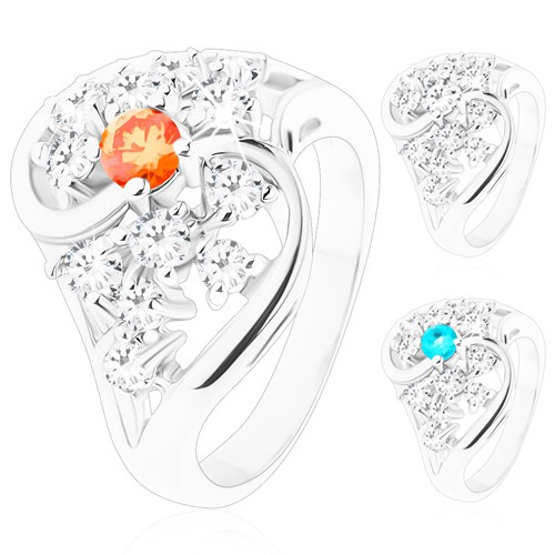 Lesklý prsten ve stříbrné barvě, zvlněná ramena a kulaté broušené zirkony v různýhch barevných provedeních.Vybírejte to nejlepší u nás. Lepší nabídku už na trhu hledat nemusíte.