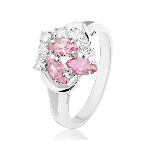 Popis produktu Prsten s rozdvojenými rameny, čiré zirkonky, zrnka růžové barvy - Velikost: 58