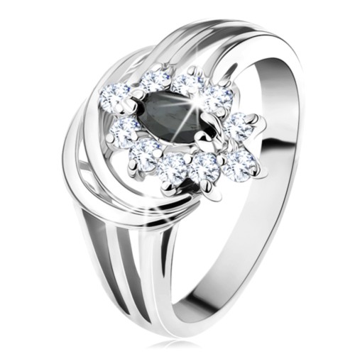 Popis produktu Prsten se stříbrným odstínem, černé zirkonové zrnko, dva lesklé oblouky - Velikost: 59