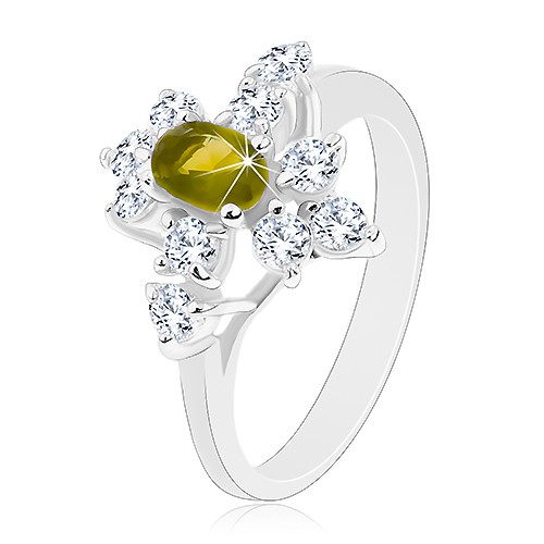 Prsten ve stříbrné barvě se zirkonovým ukončením ramen, tmavě zelený ovál, pravidelně umístěné čiré zirkonky.S pomocí našeho katalogu nakoupíte pohodlně z mobilu, tabletu nebo od počítače. Lepší nabídku už na trhu hledat nemusíte.