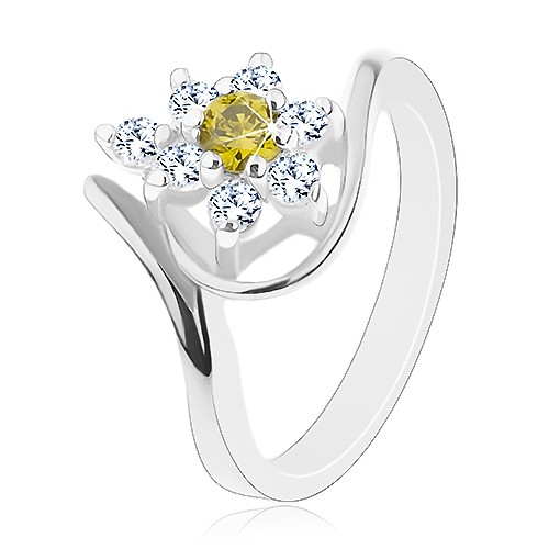 Prsten s hladkými lesklými rameny s nepravidelným obloukem, zirkonový květ ve světle zelené a čiré barvě.Ceny a dodací lhůty tlačíme stále dolů. Neotálejte s nákupem, cenu můžeme garantovat jen pro dnešní den.
