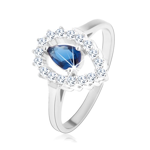 Popis produktu Prsten, stříbro 925, čirá kontura obrácené kapky s modrou zirkonovou slzou - Velikost: 55