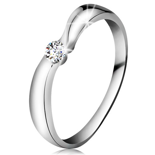 Popis produktu Prsten v bílém 14K zlatě se zářivým briliantem čiré barvy, širší ramena - Velikost: 54