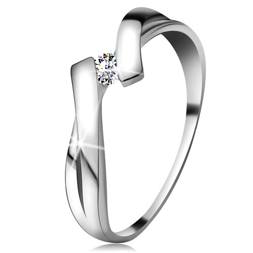 Popis produktu Prsten v bílém zlatě 585 s třpytivým diamantem, rozdělená překřížená ramena - Velikost: 57