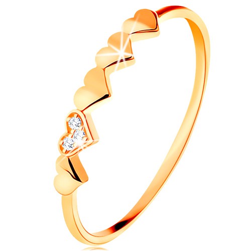 Popis produktu Prsten ve 14K žlutém zlatě - malá blýskavá srdíčka, čiré zirkonky - Velikost: 60