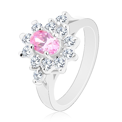 Popis produktu Prsten ve stříbrné barvě, broušený ovál v růžovém odstínu s čirým lemem - Velikost: 57