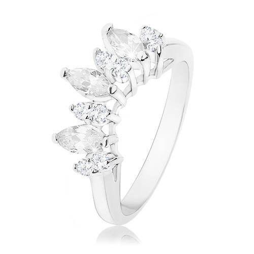 Prsten ve stříbrné barvě, čirá zirkonová zrnka, lesklá ramena - Velikost: 54
