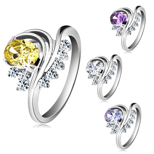 Jedinečná nabídka Prsten ve stříbrném odstínu, barevný oválný zirkon, zatočené linie, čiré zirkonky - Velikost: 57, Barva: Čirá od společnosti za výhodnou cenu 195 CZK Kč. Zobrazit více »