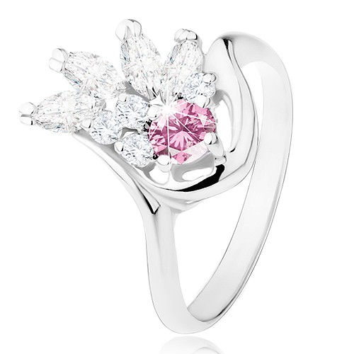 Popis produktu Prsten ve stříbrném odstínu, čirý zirkonový vějíř, růžový zirkon - Velikost: 52