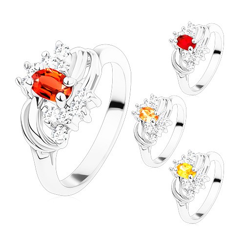 Popis produktu Prsten ve stříbrném odstínu s hladkými lesklými oblouky, barevné a čiré zirkony - Velikost: 54, Barva: Červená