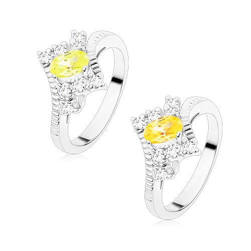 Jedinečná nabídka Prsten ve stříbrném odstínu s vroubkovanými rameny, barevný ovál, čiré zirkony - Velikost: 57, Barva: Žlutá od předního výrobce Šperky Eshop za přívětivou cenu 195 CZK Kč. Zobrazit více »