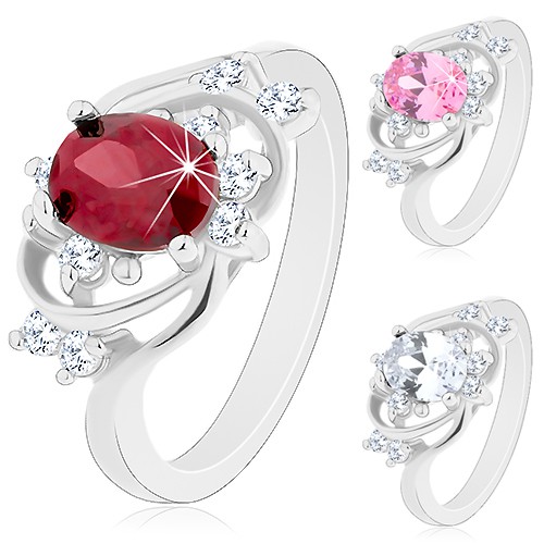 Popis produktu Prsten ve stříbrném odstínu, úzké oblouky, barevný oválný zirkon - Velikost: 54, Barva: Čirá