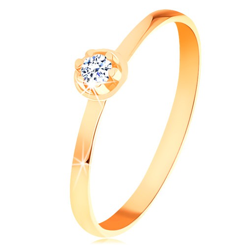 Popis produktu Prsten ve žlutém 14K zlatě - čirý diamant ve vyvýšeném kulatém kotlíku - Velikost: 63