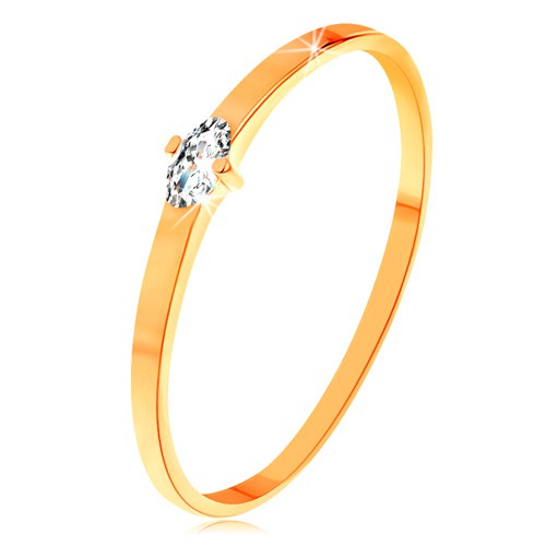 Popis produktu Prsten ve žlutém 14K zlatě - čirý zrníčkovitý zirkon, úzká hladká ramena - Velikost: 54