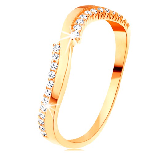 Popis produktu Prsten ve žlutém 14K zlatě - jedna hladká a dvě zirkonové vlnky - Velikost: 60