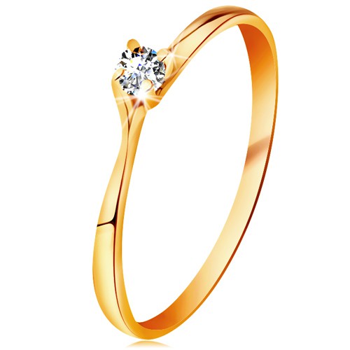 Popis produktu Prsten ve žlutém 14K zlatě - třpytivý čirý briliant v lesklém vyvýšeném kotlíku - Velikost: 61