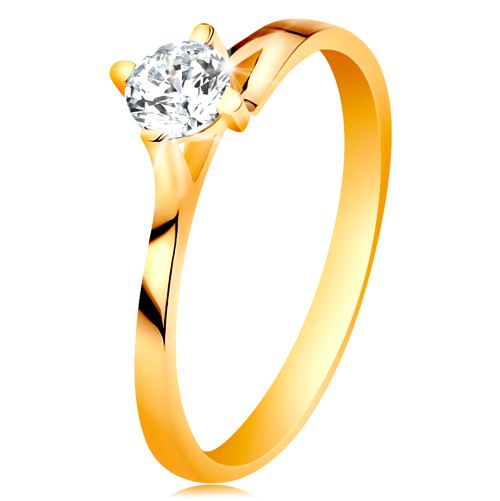 Popis produktu Prsten ve žlutém 14K zlatě - třpytivý čirý zirkon v lesklém vyvýšeném kotlíku - Velikost: 56