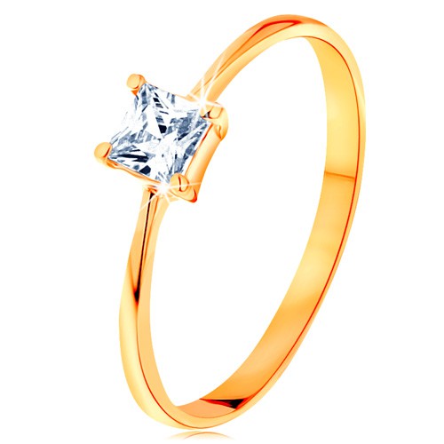 Popis produktu Prsten ve žlutém 14K zlatě - vystupující zirkonový čtverec, hladká úzká ramena - Velikost: 57