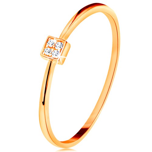 Popis produktu Prsten ve žlutém zlatě 585 - čtvereček vykládaný kulatými zirkony čiré barvy - Velikost: 52