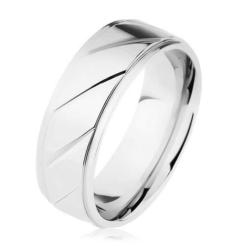 Kvalitní Prsten z oceli 316L, vyvýšený pás zdobený šikmými zářezy, stříbrná barva - Velikost: 65 od oblíbené značky Šperky Eshop ve slevě 170 CZK Kč. Zobrazit více »