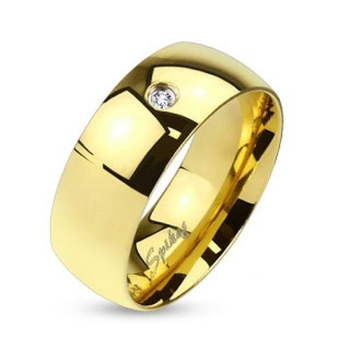 Prsten z oceli 316L zlaté barvy, čirý zirkonek, lesklý hladký povrch, 8 mm - Velikost: 70