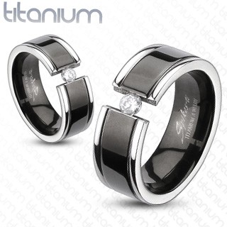Titanový prsten s černým lemem a vsazeným zirkonem uprostřed.Vybírejtee zboží v akci z pohodlí vašeho domova. Pokud budete spokojeni, doporučte nás prosím svým známým.
